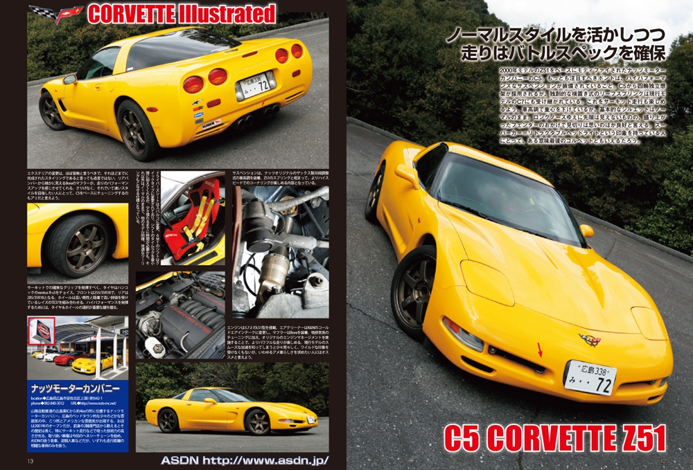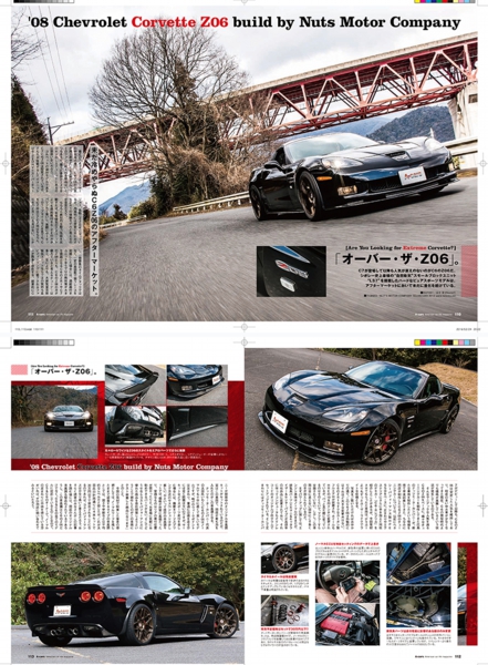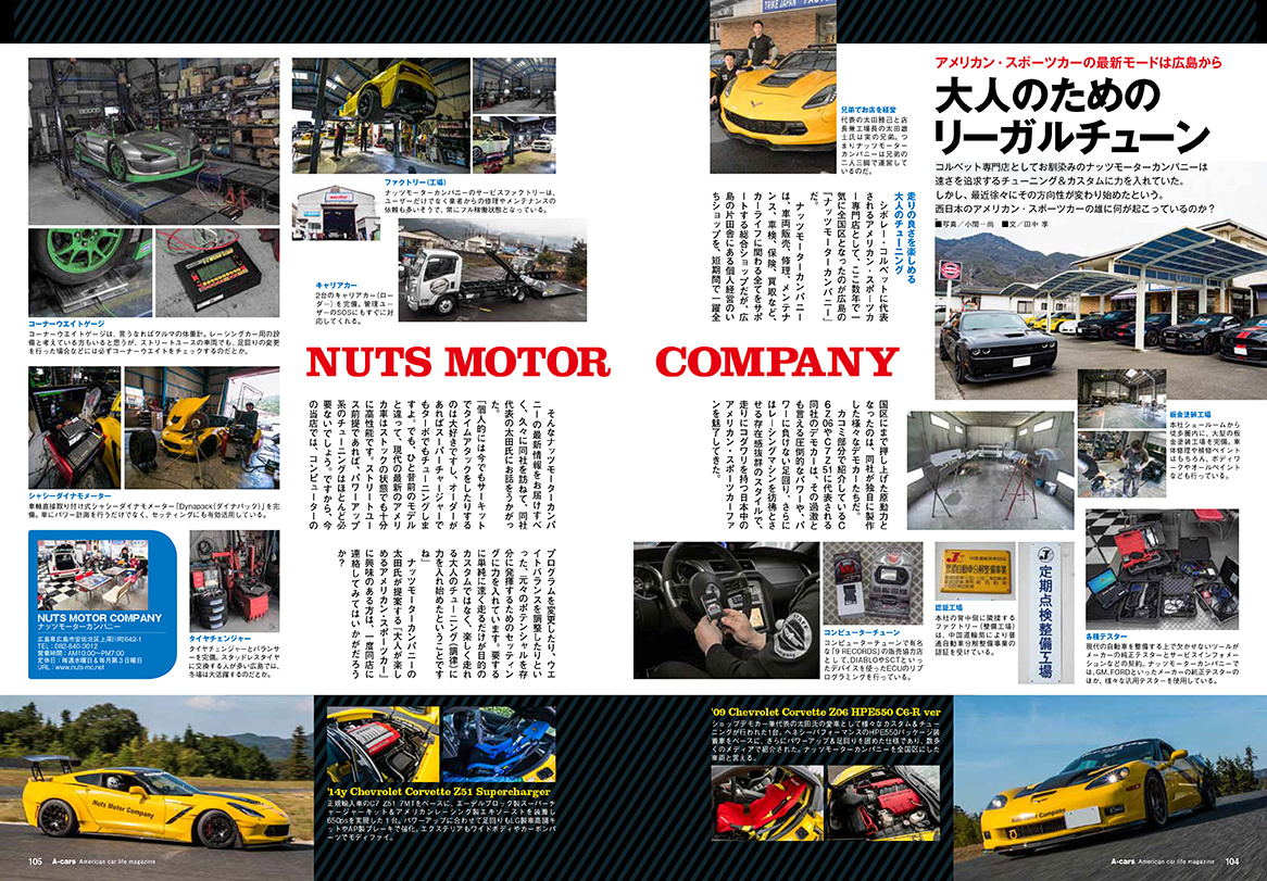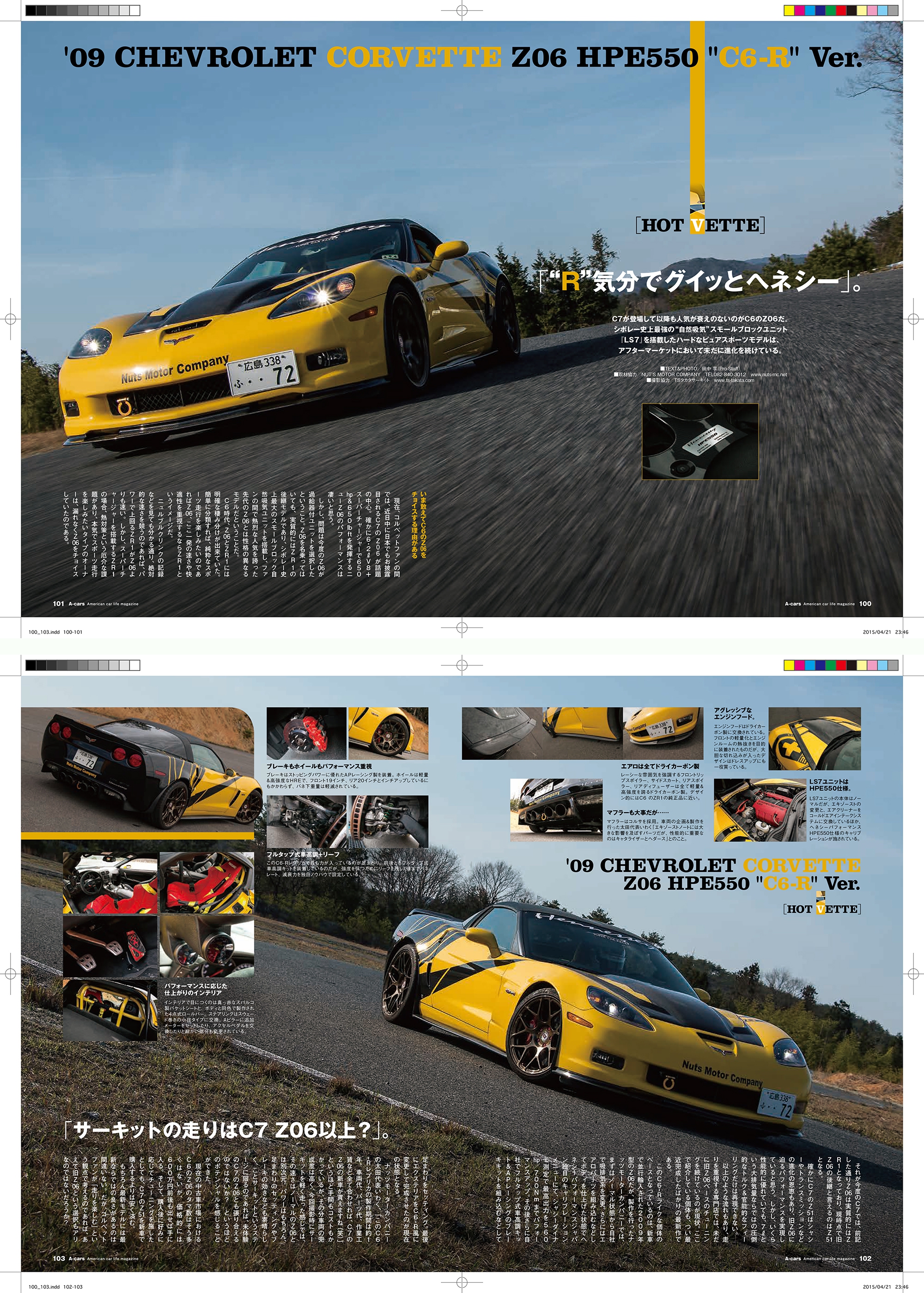 ナッツモーターカンパニーのデモカー、C6コルベット Z06 HPE550 C6-R ver.がエーカーズで4ページに渡って紹介されました。ヘネシーパフォーマンスジャパンのキャリブレーションで550HPまでパフォーマンスアップさせたコンプリートカーに、さらにC6-Rをモチーフにしたドレスアップを施しています。撮影はTSタカタサーキット全面協力の元で行われました。