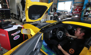 車両はC7コルベットZ51 7MT 正規輸入車。この車両にはエーデルブロックのスーパーチャージャーキットを装着していますが、その準備としてベース車のノーマルでのスペックを計測した際の様子です。